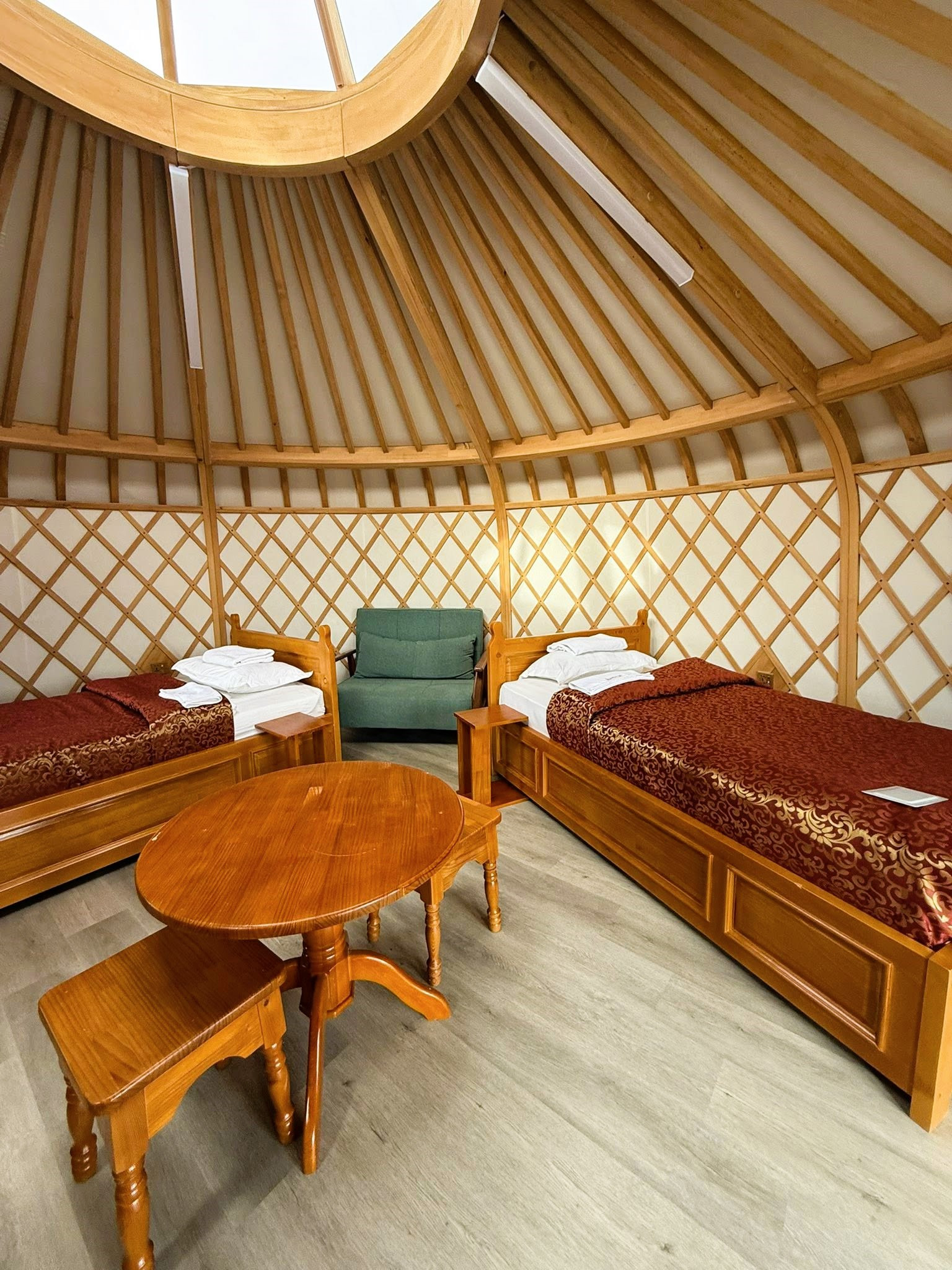 La Gher è l’abitazione tradizionale dei nomadi mongoli, caratterizzata da una struttura circolare in legno rivestita di feltro per isolare dal clima estremo. È progettata per essere montata e trasportata facilmente, adattandosi perfettamente allo stile di vita nomade della steppa. Ogni elemento interno riflette un profondo simbolismo spirituale, con la porta sempre rivolta a sud per accogliere la luce.
