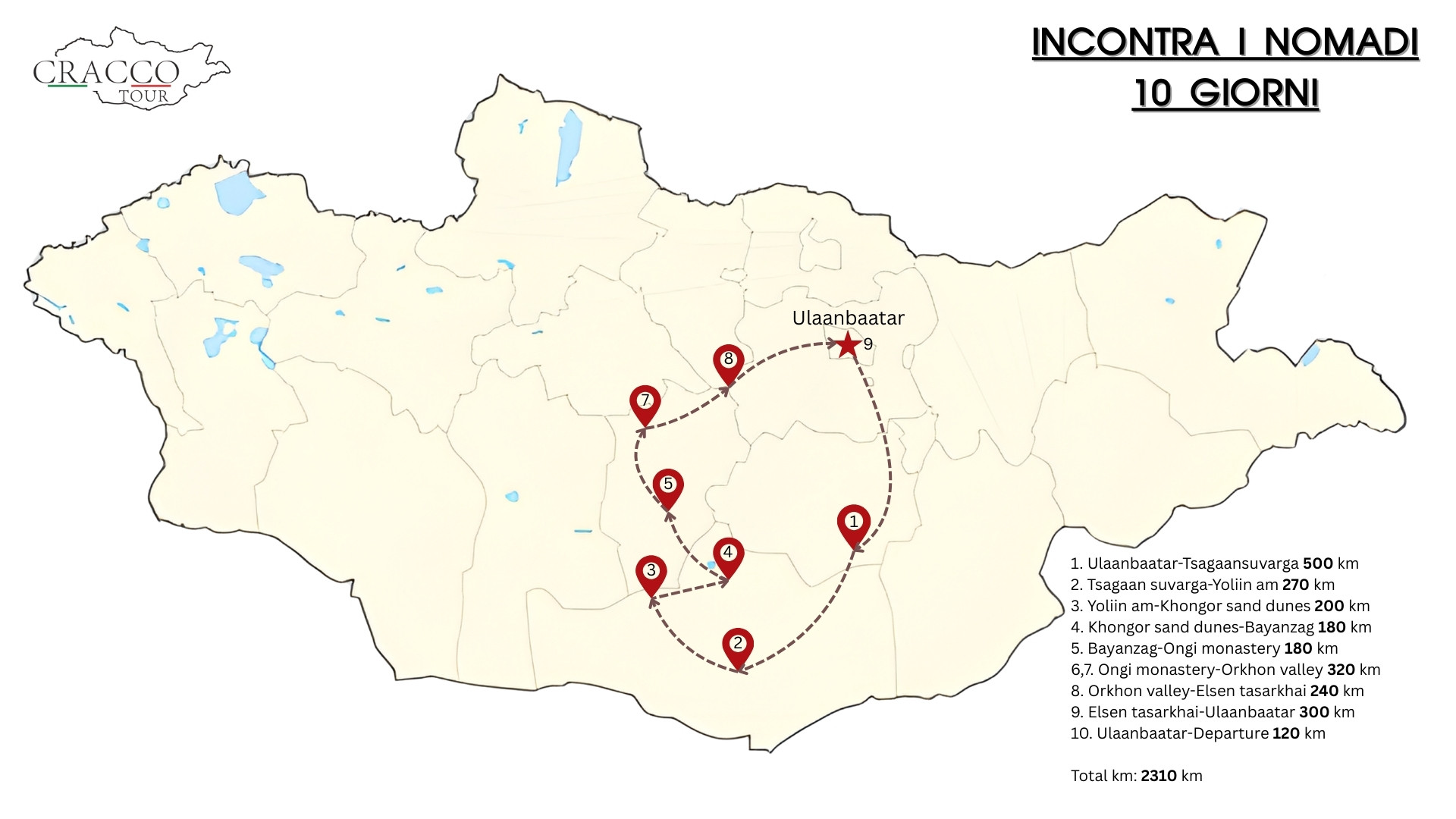 - Sistemazione: Hotel, campo ger, campo tendato