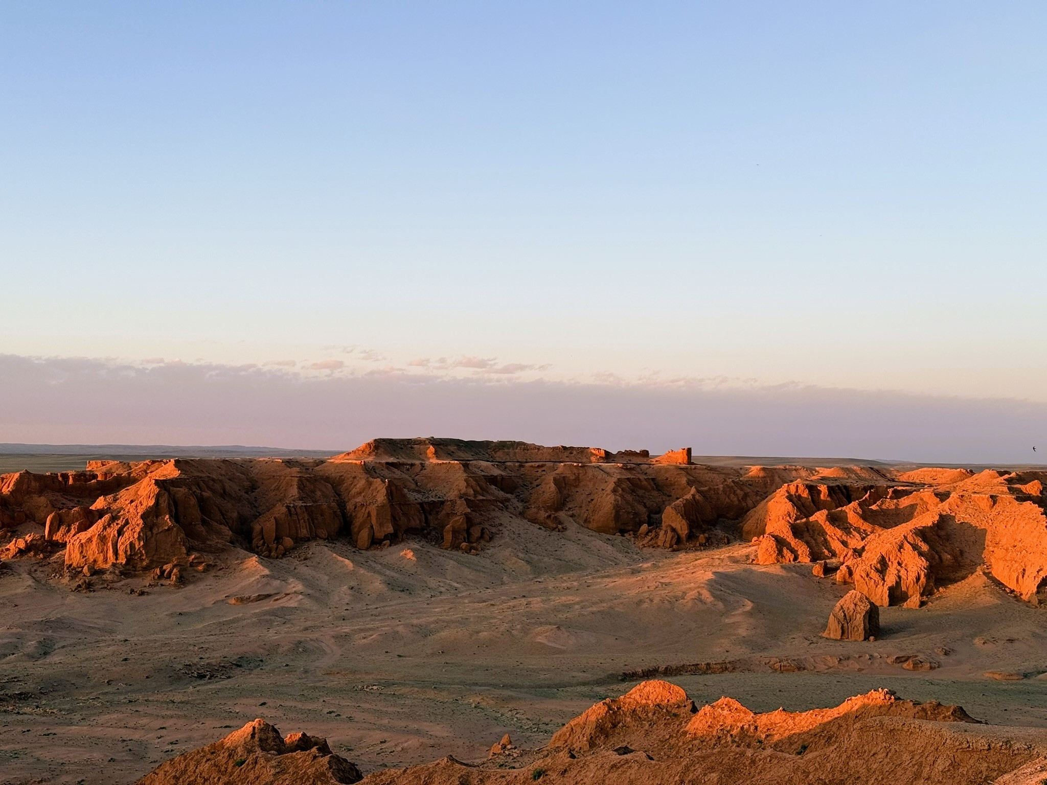 Partenza per Bayanzag, luogo leggendario dove Roy Chapman Andrews scoprì le prime uova di dinosauro. Al calar del sole, le scogliere si illuminano di un rosso intenso, offrendo uno spettacolo visivo senza pari mentre camminerete sulle tracce dei giganti del Cretaceo. Pernottamento presso campo gher.